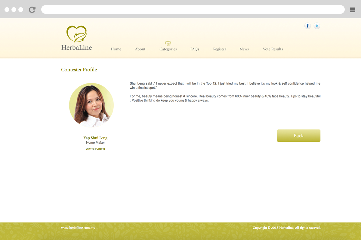 HerbaLine Ambassador Search 2013 is a way of recognising and rewarding to the brand loyal customers and also a chance to letting the results speak for the brand's quality. The management will select 12 contestants as the top 12 finalists from all submissions via online and offline and the final winners will be selected through public voting via Facebook.