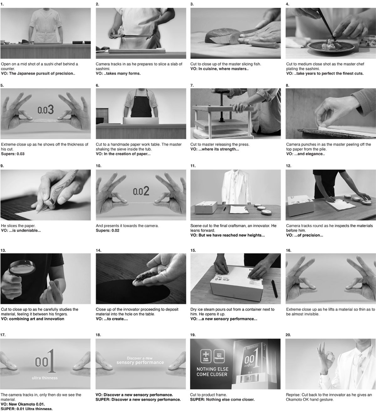 The film opens with each of the craftsmen demonstrating their skills. But none of these can hold a candle to Okamoto’s Hydro Polyurethane’s material with the amazing thinness of 0.01mm.