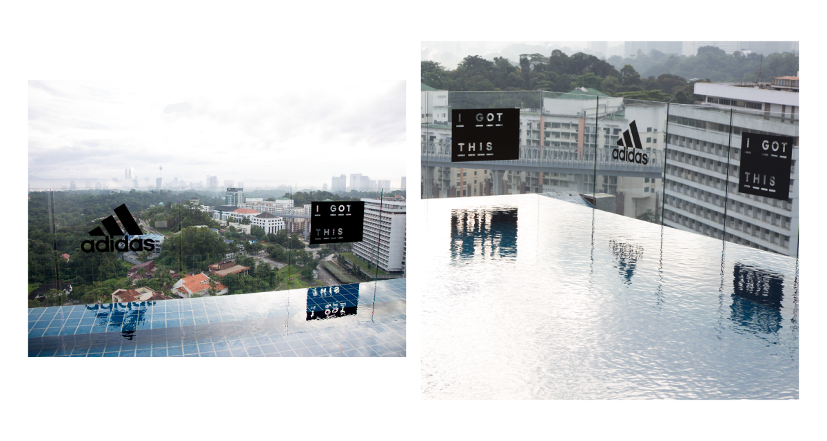 Environmental design for the event space to adapt with the campaign identity for adidas I GOT THIS yoga event in Kuala Lumpur. My task includes setting up the event hall, fabricate the glass panel, walls, and pillars at the outdoor swimming pool to generate an environment that helps participants to immerse into this event concept.