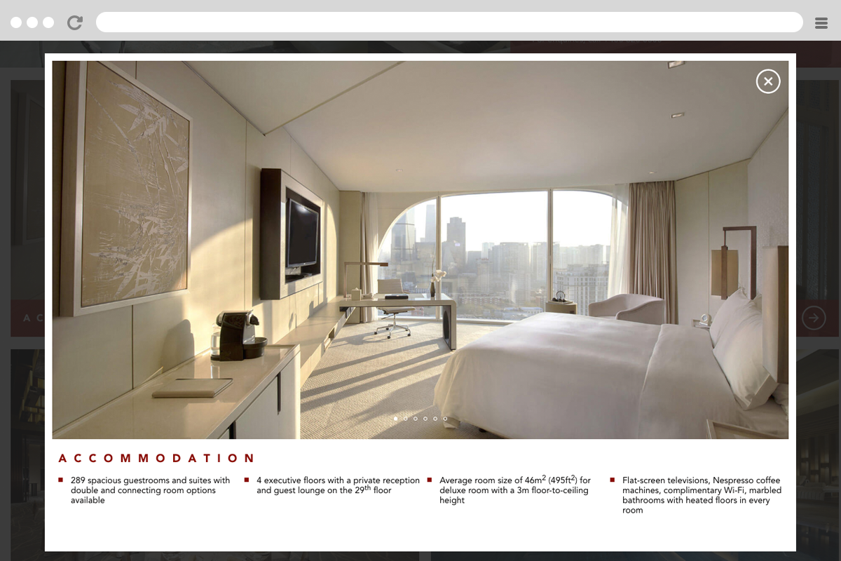 A compilation of digital sales brochures for Conrad Hotel and Waldorf Astoria Hotel, both located in China. This digital brochure showcases lifestyle and hotel information, and is available in multiple languages. It is also responsive across all digital platforms.