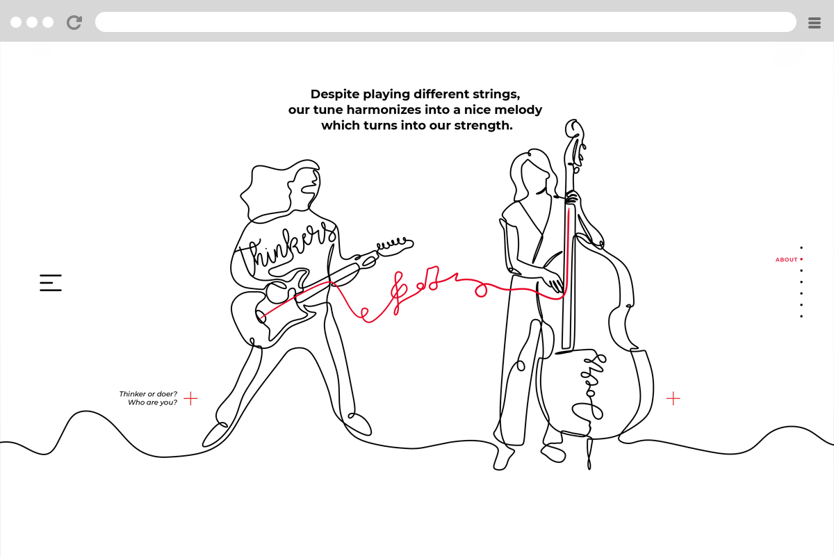 The red thread will be a core design element across all company assets, including the website, business stationery, PowerPoint presentations, and more.